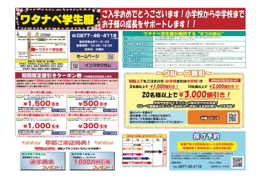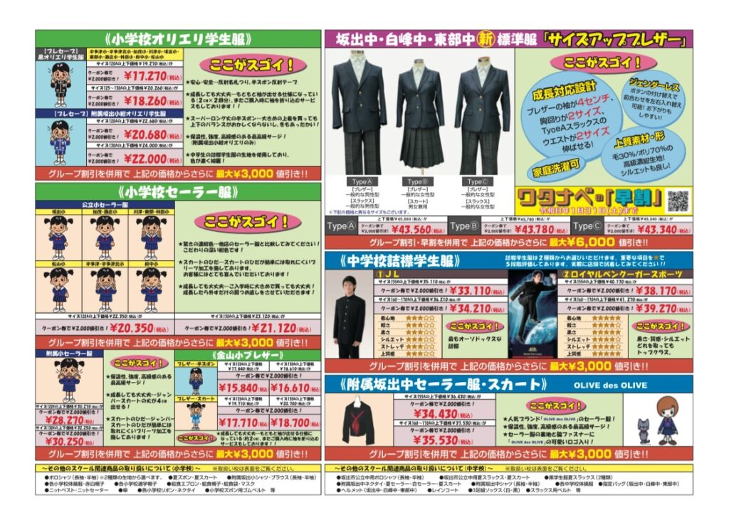ワタナベ学生服のWEBチラシをぜひご覧ください。